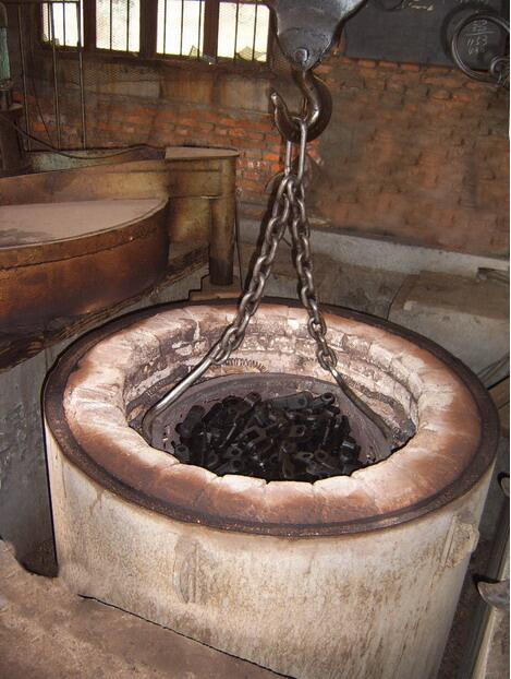 埋刮板輸送機(jī)牽引鏈條,我們采用優(yōu)質(zhì)低碳合金鋼20MnTiB模鍛成型,經(jīng)表面滲碳、淬火熱處理,表面硬度高(HRC55以上),心部韌性好,耐磨損、耐沖擊,該鏈條在輸送機(jī)行業(yè)得到最廣泛運(yùn)用!